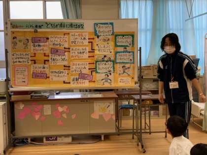 「君はかぜに負けないぞ!」や「このままだとかぜに負けちゃうぞ」などにたどりつくのですが、風邪をひかないようにするためにはどんな生活をしたらいいのかを、楽しみながら考える時間となりました。