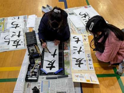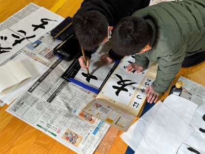 1,2時間目に学年で書き初めをしました。