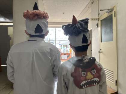 給食委員会の人も、鬼の角をつけて、みんなを迎えてくれていました。