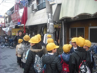 1月15日(金)、今日は5年生の社会見学がありました。場所は、生野区にある猪飼野コリアタウンに行ってきました。コリアボランティア協会の方に案内と説明をお願いし、「自分の目で見る〜学びと体験〜」をテーマに、コリアタウンの歴史や日本とのつながりなどをいろいろと学習してきました。また、買い物のためにお店に入り、おこづかいの500円で、お家の方へのお土産を悩みながらも楽しそうに買い物していました。