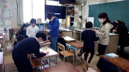 図書委員会では、1年間の活動の反省をした後、6年生から今の思いを4.5年生に伝えてもらう場面がありました。