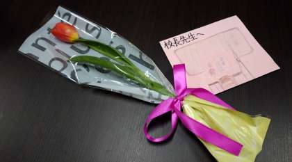6年生から、心のこもったメッセージとチューリップの花をもらいました。