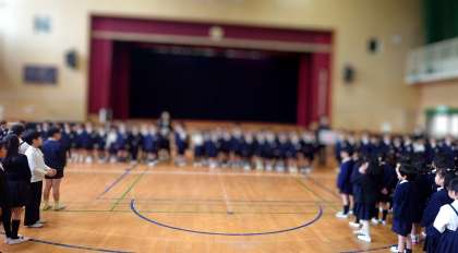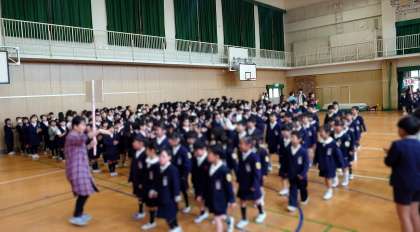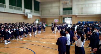 104名の新1年生は、2〜6年生からの大きな拍手で迎えられました。