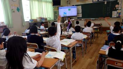 自分の考えをペアで紹介し合ったり、手を挙げて発表したりしていました。