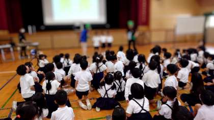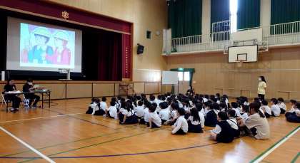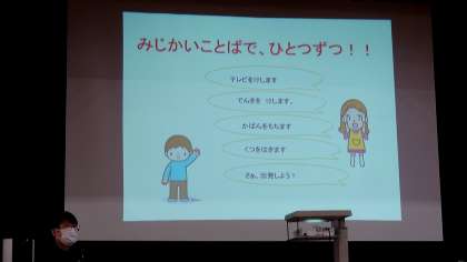 1時間目、社会福島協議会の方々に来ていただいて、「一人ひとりの違いを認めあって みんななかよく」というお話をしていただきました。