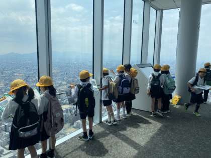 社会科の授業で覚えた四方位にどんな場所があるのかを実際に見て確かめ、楽しんで学習をしていました。