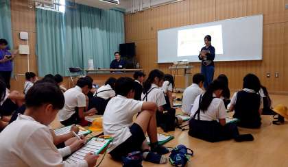 次の時間は、多目的室で、地球温暖化を何とかするためにも、ごみを減らすこと、食べ残しをしないことなど、自分たちにもできることがあるということ等を教えていただきました。