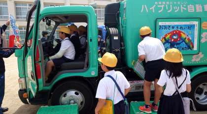 今日は環境事業局の職員の方々が、パッカー車に乗って来てくださいました。