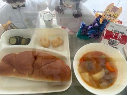 今日の給食では、「きゅうりのバジル風味サラダ」にかんそうバジルを使っています。