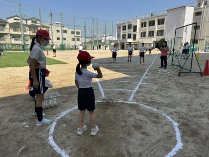 1年生は6年生とペアになって、投げ方を教えてもらうなど交流をしながら取り組みました。