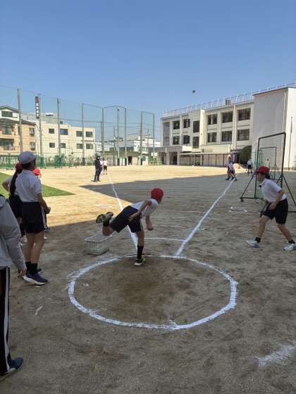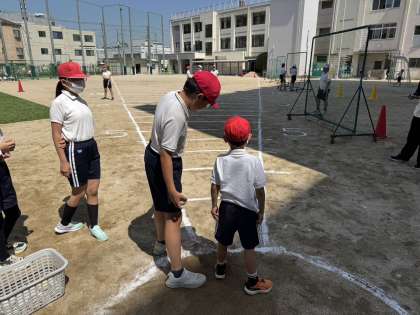 ソフトボール投げ、立ち幅跳び等に取り組みました。ソフトボール投げでは、40メートルを超える記録が出ると、自然と大きな歓声と拍手がわいていました。クラスの友だちの応援に「去年より記録が伸びた!」とうれしそうに教えてくれる人もいました。