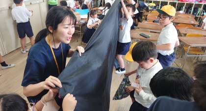 班の教室で、お店の看板やルール説明の掲示物を作ったり、ゲームの進め方の練習をしたりしました。みんな進んで自分にできることに取り組んでいました。