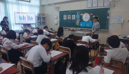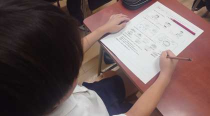 理想の朝ごはんを考えてワークシートに書く活動では、主食にご飯食べる人、パンを食べる人、それぞれに、バランスを考えながら主菜、副菜を選んで書き入れていきます。自信満々に自分の作った献立をみんなの前で発表していました。