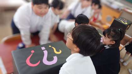 教室に隠してある折り紙の宝をできるだけたくさん探す「宝さがし」です。