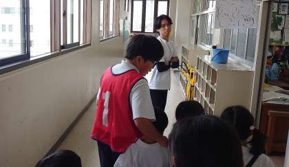 また、スマイル班のリーダーも、1年生の様子を見ながら声をかけるなど、すてきな姿がたくさん見られました。