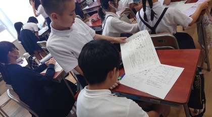 その上で、バランスの取れた献立を考えて、友だちと交流していました。