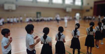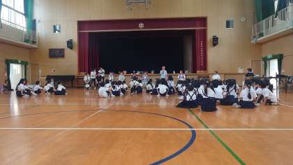 7月27日(日)に、学校で海老江東地域の盆踊り大会が開催されます。昔から親しまれてきた盆踊りを知ってもらって、たくさんの人に踊ってほしいと、地域の女性会の方々が中心となって、子どもたちに練習会をしてくださいました。