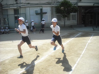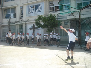 続いて、2年生⇒3年生⇒6年生の体力テストのようすです。