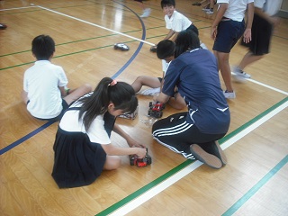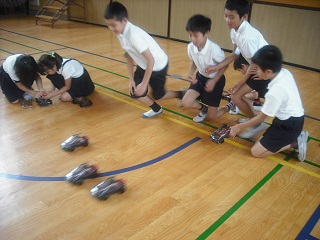 先週、4年生の理科の授業では「電気のはたらき」で、乾電池のつなぎ方によって、どのように車が走るかを学習していました。自分が一生懸命作ったおもちゃの車が勢いよく走り出すと「わあ!」と歓声が上がっていました。動かなくなって先生に修理してもらっている子もいました。