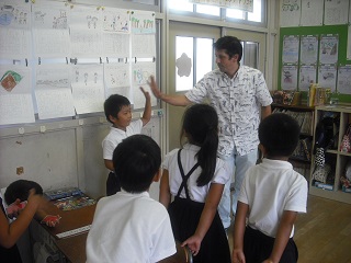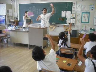 9月7日(水)毎年教えていただくマッツさんに来ていただき、英語の学習をしました。1年1組の子ども達はマッツさんとは初対面で、最初は緊張していましたが、だんだん慣れてきて、大きな声で英語のゲームを楽しんでいました。