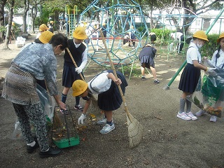 10月18日(火)1時間目に「大阪マラソンクリーンUP作戦」(地域清掃活動)を行いました。校区にある公園3つとその周辺道路で、子ども達が地域の人や保護者と清掃活動をしました。地域の方にあいさつをしたり、一緒にゴミを集めたりして頑張りました。地域の方や保護者の皆様、ご協力ありがとうございました。