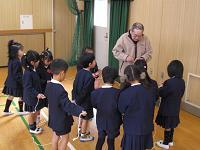 地域のお年寄りの方、7名を先生にお招きし昔遊びをしました。はねつき・あやとり・お手玉・おはじき・めんこ・けん玉・こま回しの7つです。
