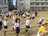 今日は、この冬一番冷え込みでした。そんな中、かけ足運動がはじまりました。子どもたちは元気に運動場を走っています。