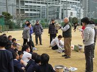 3年生で、地域のお年寄りをお招きし昔なつかしい七輪で火おこし体験を実施しました。おこした火で、もちつき大会でついたお餅を焼いていただきました。