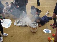 マッチで火をつけた経験のない子どもたちは、まずそこから練習です。火種から勢いよく燃えるようにするためにはいろいろな工夫がいります。無事、火がつくとお餅を焼きます。焼いたお餅は、砂糖醤油ときな粉でいただきました。おいしかった!
