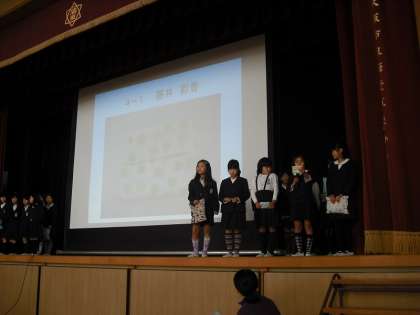 12月14日、児童集会でクラブ発表がありました。ゲームクラブは、オセロや将棋、人生ゲームに百人一首など実演も兼ねた発表を行いました。手作りクラブは、自分たちが作った実物と写真を紹介して、工夫したところを中心に上手に発表していました。