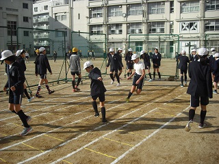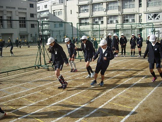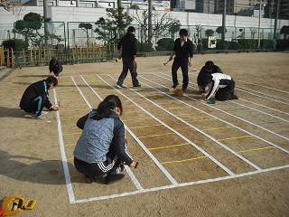 1月11日、運動場に体力向上のためのラダートレーニング用ラインを設置しました。職員が児童のためにラインを設置しました。実際には、明日から使う予定にしています。今日は、6年生がためしの練習をしました。敏捷性や持久力等の体力向上のためにどんどん使ってほしいと思います。