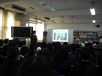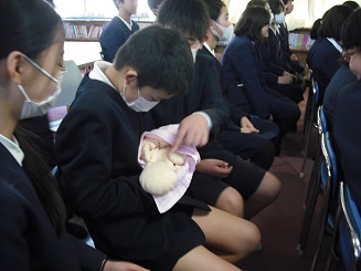 2月2日(木)、2時間目に助産師の竹中加奈枝さんをゲストティ—チャーにお招きして命の授業をしてもらいました。助産師の仕事やかけがえのない命の話などをビデオや写真などを使ってわかりやすく説明してもらいました。赤ちゃんの成長の過程ごとの人形を実際に手にとったり、だっこしたりして命の重さなどを確かめていました。みんな真剣に取り組んでいました。