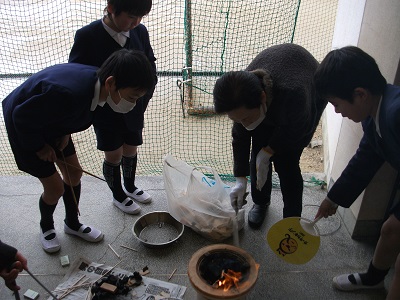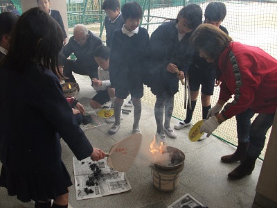 2月9日(木)、5・6時間目に3年生の火おこし体験がありました。地域の方に来ていただき、七輪を使ってお餅を焼きました。団扇を使って火の調整をしながら、上手にお餅を焼きました。その後は、お餅を食べながら、地域の方に昔のことをいろいろ伺いながら交流を深めました。