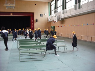 3月6日(月)、今日から卒業式の練習が始まります。そのための準備として、1時間目に5年生が、講堂の準備をしてくれました。シート敷きから始まり、椅子並べ、雛壇の準備など少ない人数にもかかわらずてきぱきとしてくれました。
