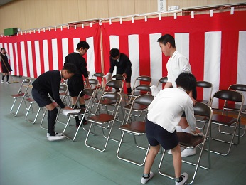 4月6日(木)明日の入学式のために、朝から6年生が来て、会場となる講堂や廊下などの掃除や椅子並べなどを頑張っていました。入学式で歌う校歌の練習もしました。また、2年生も新入生歓迎の演技の練習を張り切って取り組んでいました。素晴らしい入学式になることでしょう。