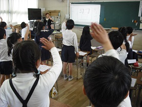 4月26日(水)3年生が国語の学習で、漢字の正しい書き方や読み方について、筆順や音読み訓読みを学んでいました。みんなで一緒に手を使って書き方を表現したり、ノートに丁寧に書き写したりしていました。