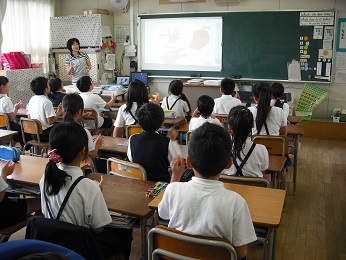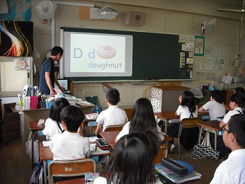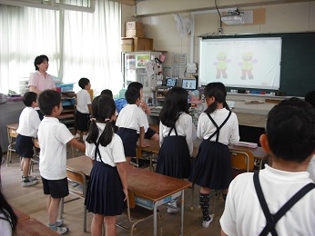 5月16日(火)先日も掲載しましたが、本校では、そうじの後に15分間の英語の学習を、週3回しています。今日は2年生と5年生の様子を紹介します。電子黒板を使い、大きな声で歌ったり、動作を入れたりして楽しく取り組んでいました。