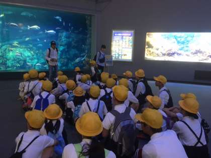 宿舎の方にお礼を言ってから、バスで出発しました。30分ほどで、鳥羽水族館に着きました。