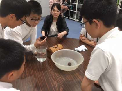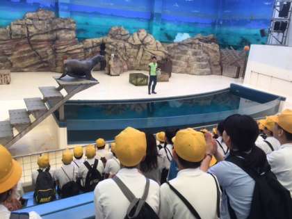 同じく鳥羽水族館の中での活動の様子です。アシカショーでのアシカの華麗な演技、生きもん発見教室でのウニやヤドカリの生態に感動しています。