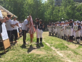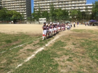 6月4日(日)福島区子ども会連合協議会のキックベースボール・ソフトボール大会が開催されています。開会式では、海老江東子ども会の選手も堂々と入場行進し、優勝旗返還・選手宣誓をしました。