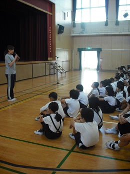 6月5日(月)今日から暑さ対策のため、朝会は講堂ですることになりました。6月から葉書の値段が52円から62円になったことに因んで、「前島密」を紹介しました。日本の近代郵便制度の仕組みを築いた人物で、他にも江戸遷都や鉄道、新聞、電話、教育など様々な分野で大きな影響を与えた人であることを紹介しました。最後に、昨日の区子連のキック・ソフト大会で頑張った海東子ども会のメンバーを称えました。