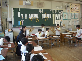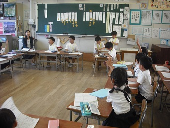 6月9日(金)1年1組で学級活動の研究授業が行われました。題材は「みんなあそびをしよう」でした。休み時間にみんなでなかよく遊ぶための話合いでしたが、活発に意見が出され、ドッジボールや鬼ごっこ、なわとびなど楽しい遊びが次々と決まりました。