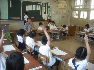 6月16日(金)1年2組で学級活動の研究授業を行いました。題材は「みんなあそびをたのしくしよう」です。昼休みにクラスのみんなでする遊びを何にするか、みんなで楽しむためにルールをどうするかについて話し合いました。司会や記録の子どもも頑張り、活発な話合い活動になりました。すばらしい!