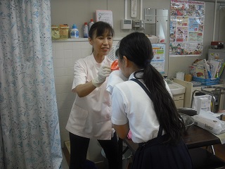 7月5日(水)歯科衛生士さんと校医先生に来ていただきフッ化物塗布がありました。フッ化物を歯に塗ることで歯が丈夫になることのお話のあと、歯にフッ化物を塗布しました。塗布している最中は少し我慢しなければなりませんでしたが、4年生がんばりました。