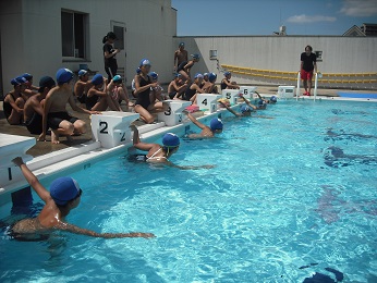 8月1日に、なみはやドームで開催される大阪市児童水泳記録会に向けて、4年生以上の出場を希望する子ども達による水泳練習が午後に行われています。タイムを図ったり、リレーで競い合ったりして、楽しく練習していました。
