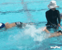 夏季プール水泳の期間に実施している水泳教室の様子です。みんな頑張っています。