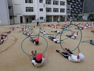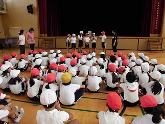 9月6日(水)今日から運動会の練習が始まりました。1・2年生はフラフープを使った運動に取り組んでいました。3・4年生は踊りの練習の後、児童の代表が感想を発表していました。