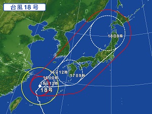 台風18号が近づいてきています。予想では、16日(土)・17日(日)に近畿地方への影響が大きく、風雨が強まるようです。明日から3連休のため、学校はお休みですが、子ども達の安全にお気をつけください。特に、不要不急の外出は控えるようにお願いいたします。
