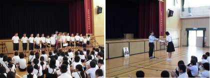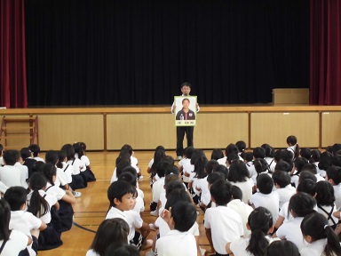 9月25日(月)運動会が今週末に近づいてきました。今朝の朝会では、先週の練習の様子から、残り1週間やる気を持って頑張るように激励しました。人物として、女子サッカーの「澤 穂希」さんを紹介しました。世界的なプレイヤーとなったその略歴と、「壁にぶつかるからこそ、人はがんばれる」のことばをもとに、少女時代からの努力と苦労の話をしました。そして、学習や運動、生活の中でいろいろな壁に当たった時、すぐにあきらめずに頑張ってほしいことを話しました。最後に週末にスポーツで表彰を受けた子ども達を紹介し、みんなで栄誉を称えました。