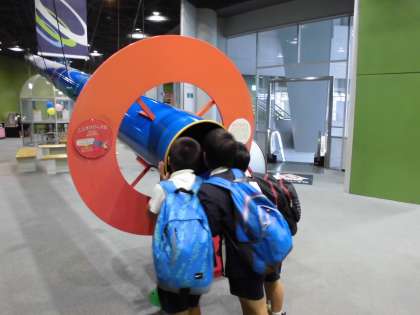 10月13日(金)4年生が大阪市立科学館と国立国際美術館に社会見学に出かけました。科学館では、最初に展示物の体験や見学をしました。そのあと、プラネタリウムを見ました。夏の星座のことと、月の満ち欠けについての話を聞きました。お弁当を食べてから、国立国際美術館で美術作品の鑑賞をしました。現在特別展の「バベルの塔」をはじめ、たくさんの作品を鑑賞することができました。